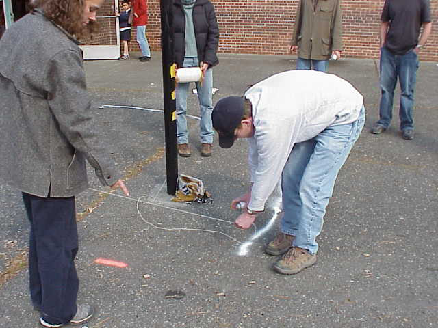 Marking the area where asphalt is to be removed and beds added.