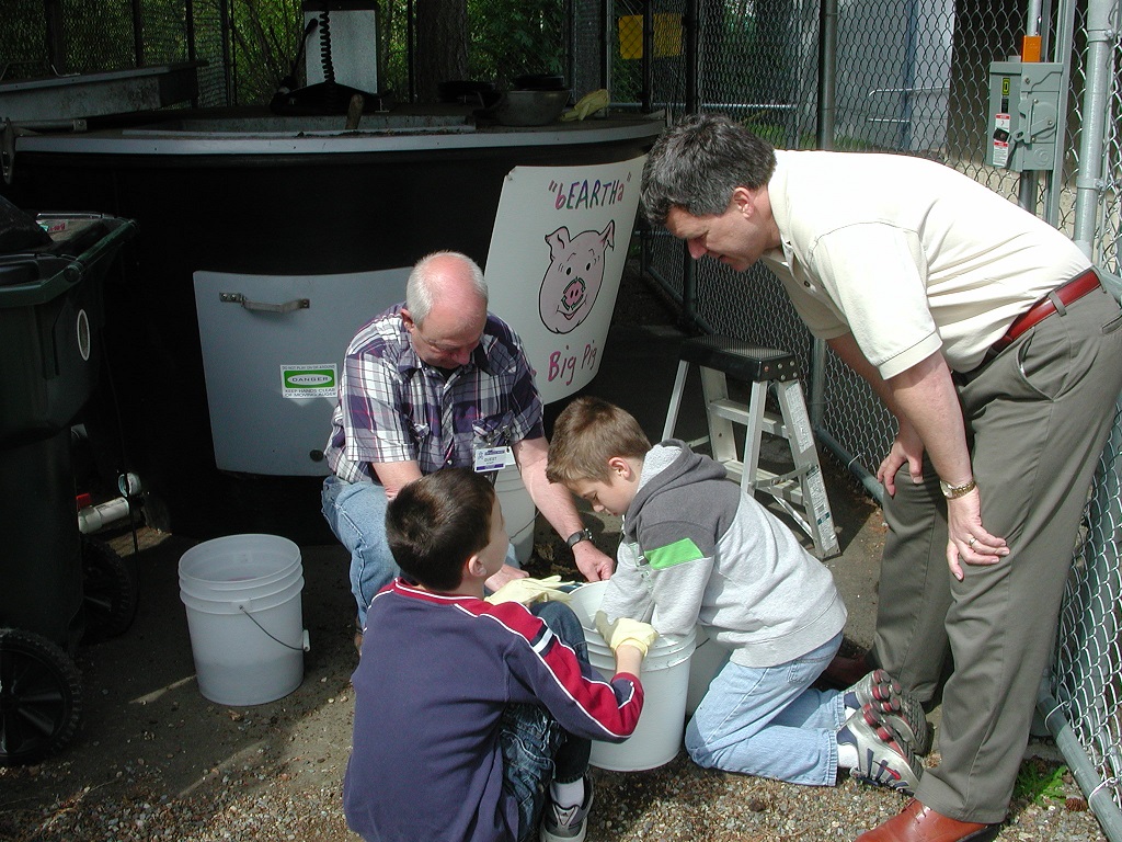 Earth Tub Composters are small on-site composting systems that can be used to recycle food waste from school lunch programs or smaller businesses into compost. This reduces garbage volume and costs while providing an education on recycling for students. Compost produced can be used in landscaping or sold to employees and student families. While the Earth Tub no longer made, check out the similar Earth Cube which is also from Green Mountain Technologies.